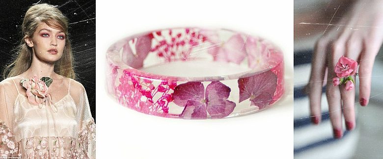 Después de todo, se pueden encontrar en casi todas partes y las puedes usar en la joyería. Esta tendencia ha sido elegida por muchos diseñadores extravagantes, que simplemente no pueden vivir sin crear algo original. ¡Adoro esta tendencia! Me he obsesionado tanto con las flores frescas que me he aprendido sus nombres y variedades. Si te gusta este tema, voy a realizar un post dedicado a las flores frescas para esta temporada.