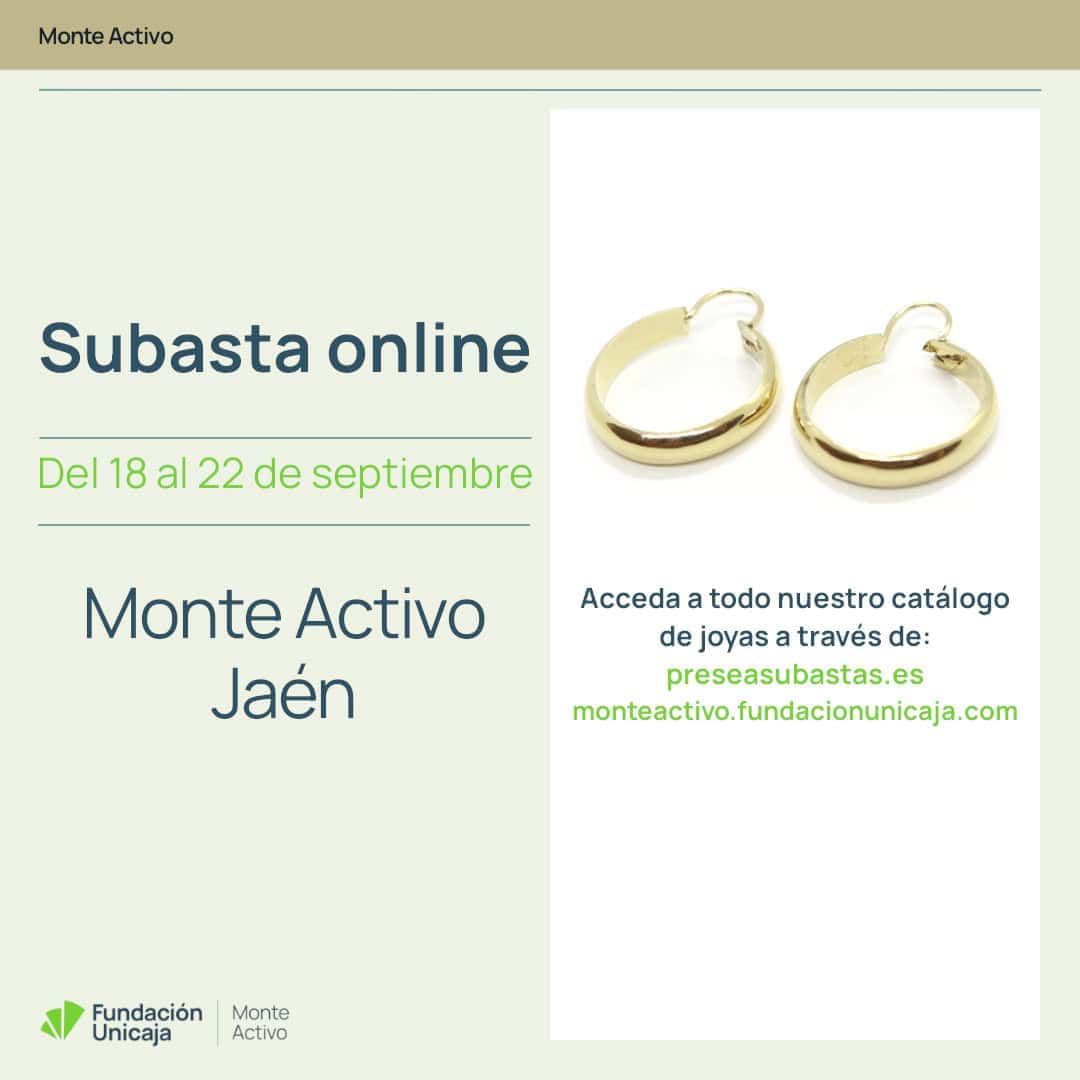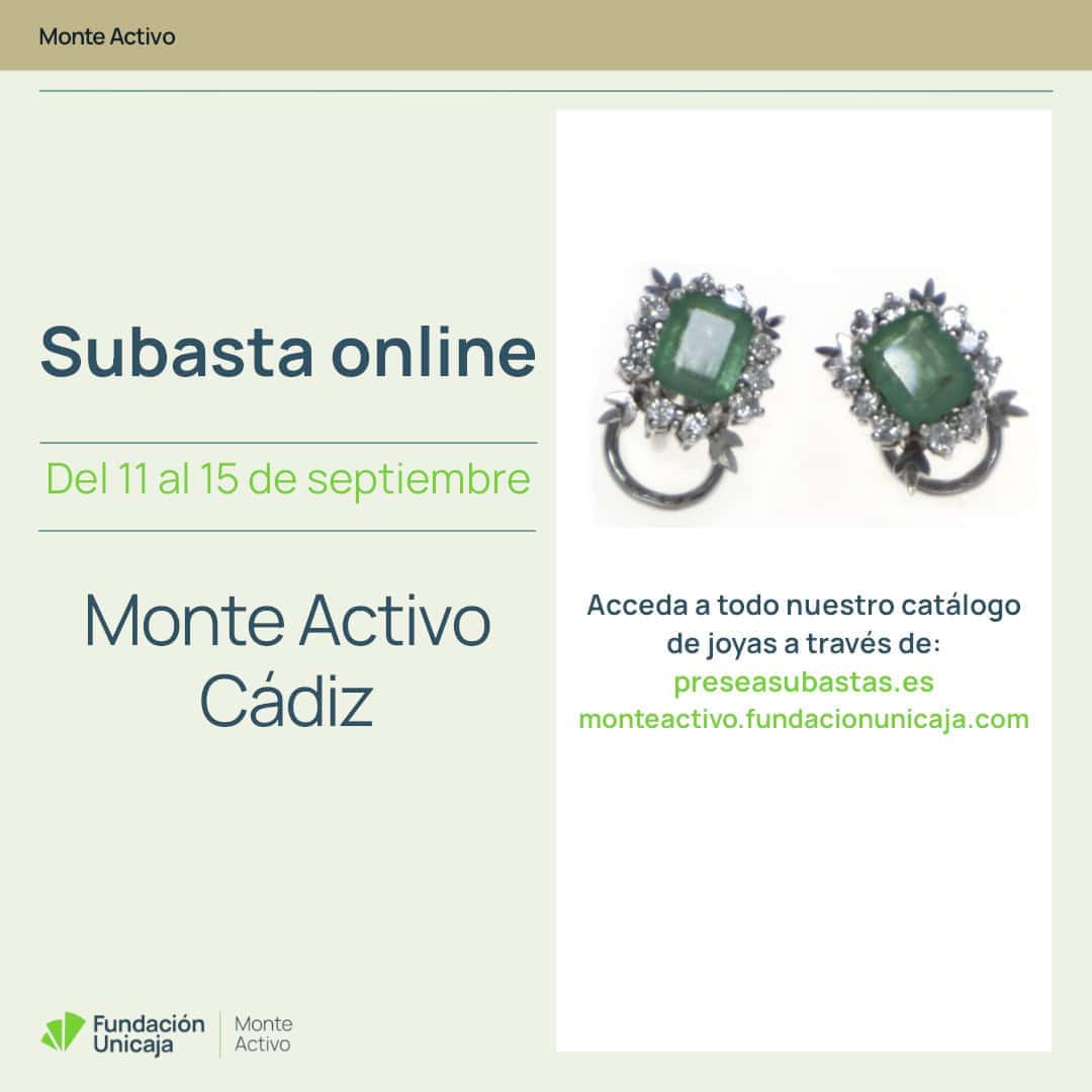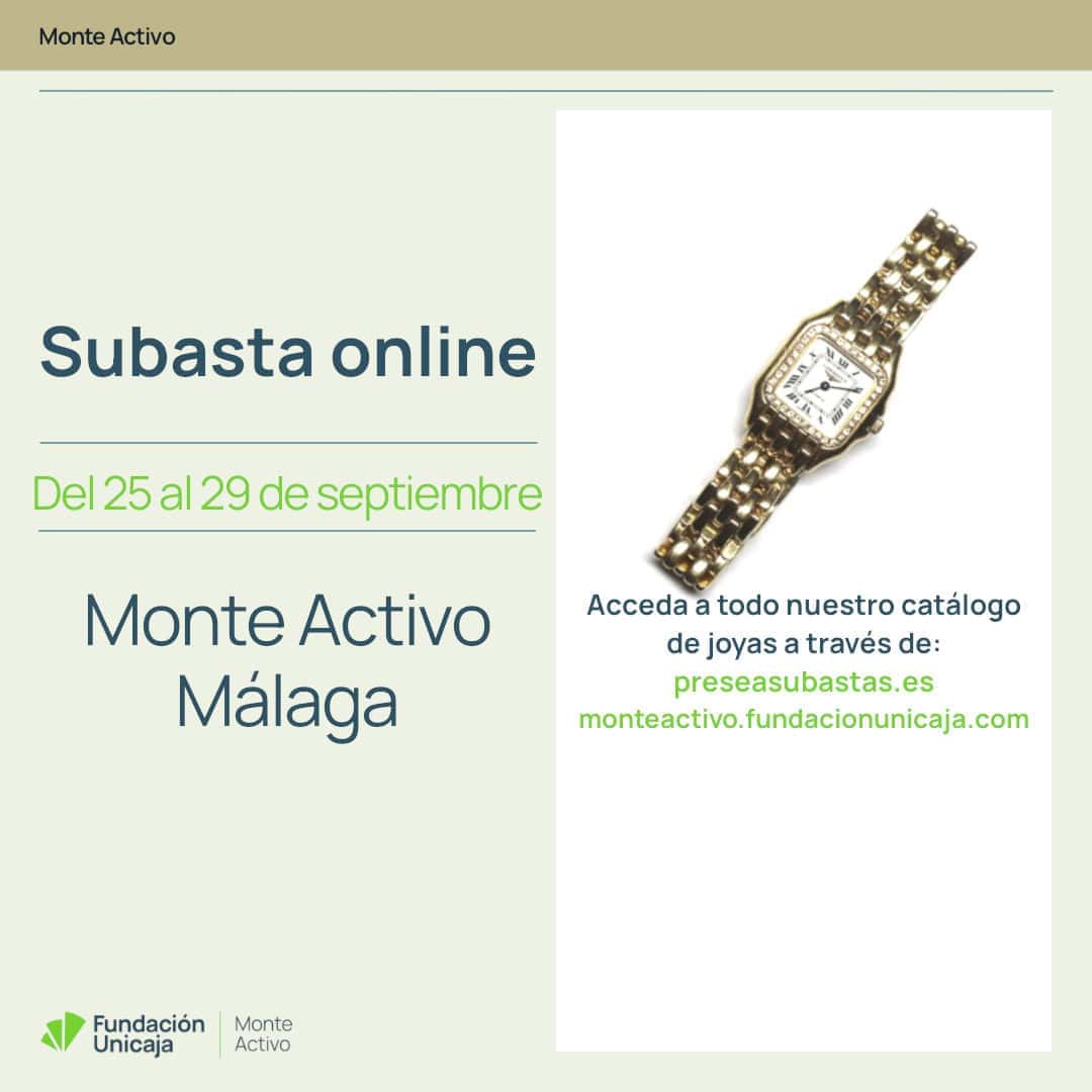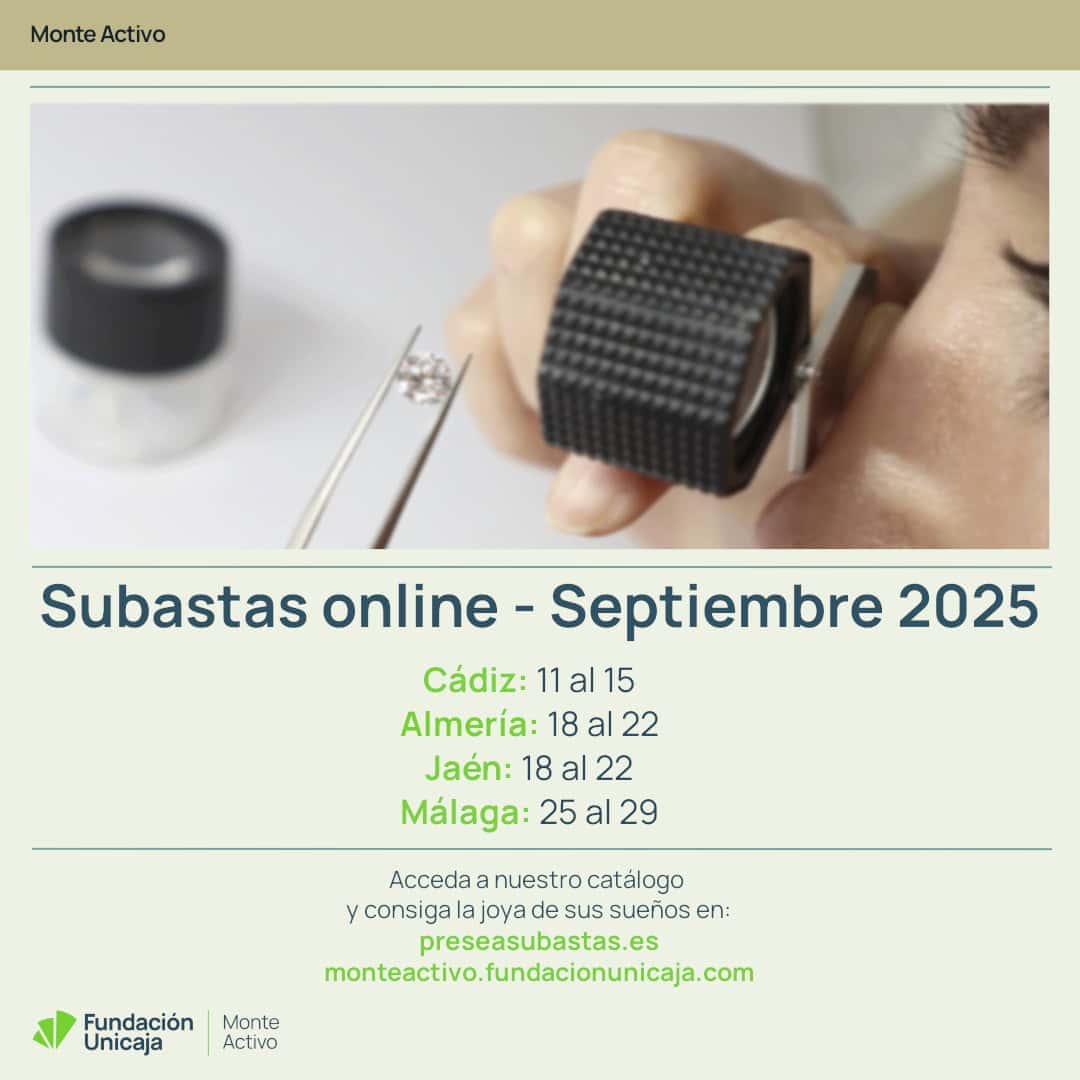 Monte Activo, el Monte de Piedad de Fundación Unicaja, llevará a cabo cuatro subastas online de joyas en septiembre de 2025. Como es habitual, tendrán lugar en el portal online de subastas de Presea, la Asociación Española de Montes de Piedad: www.preseasubastas.es.